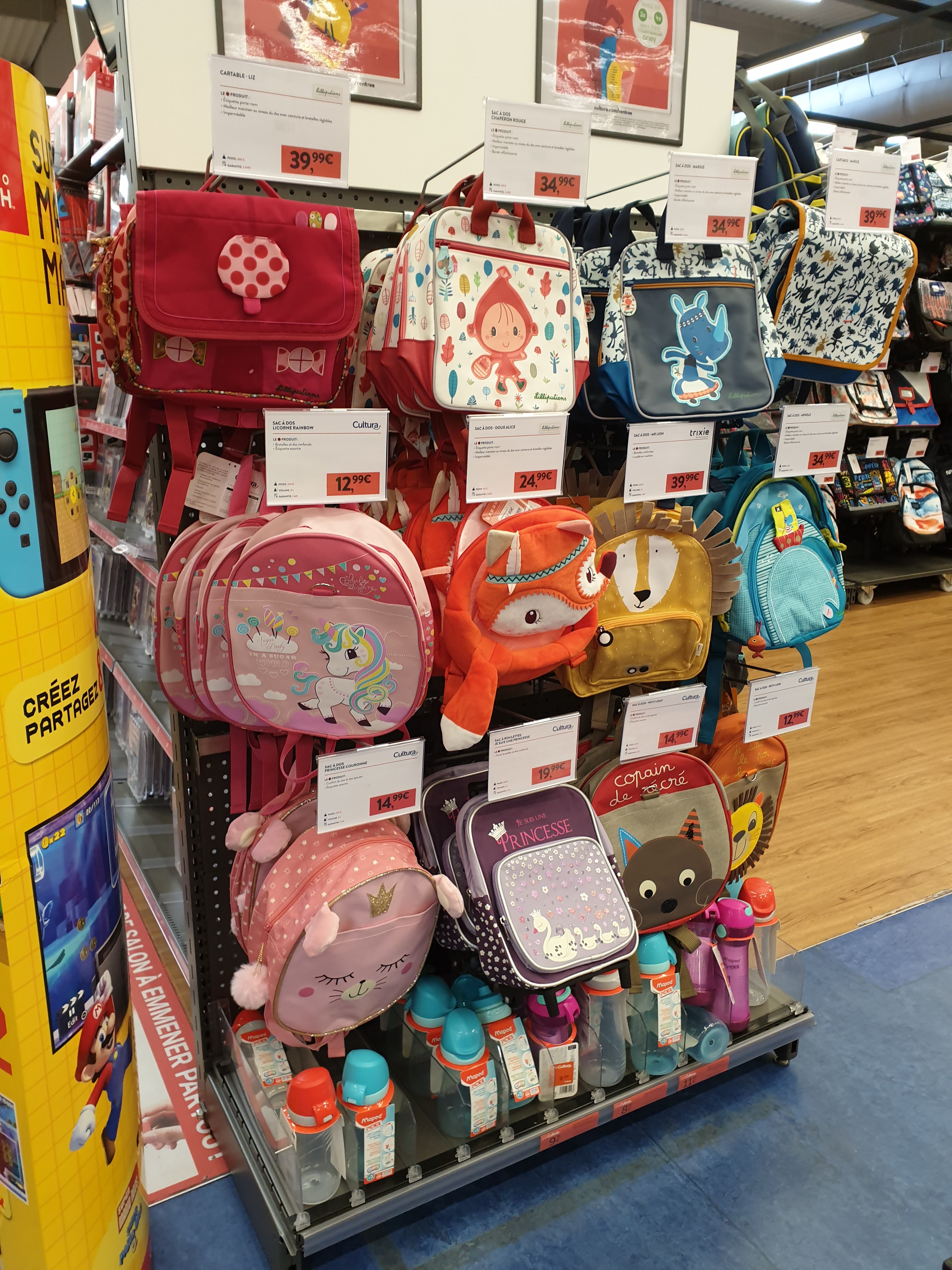 Manque plusieurs produits. Penser commander équitablement les trousses assorties au sacs pour que les clients n'aient pas à faire plusieurs magasins pour trouver la trousse qui correspond au sac à dos . Magasin bien ranger. Personnel courtois. Les prix sont excessifs sur certains produits. Comme les feutres de la marque Bic