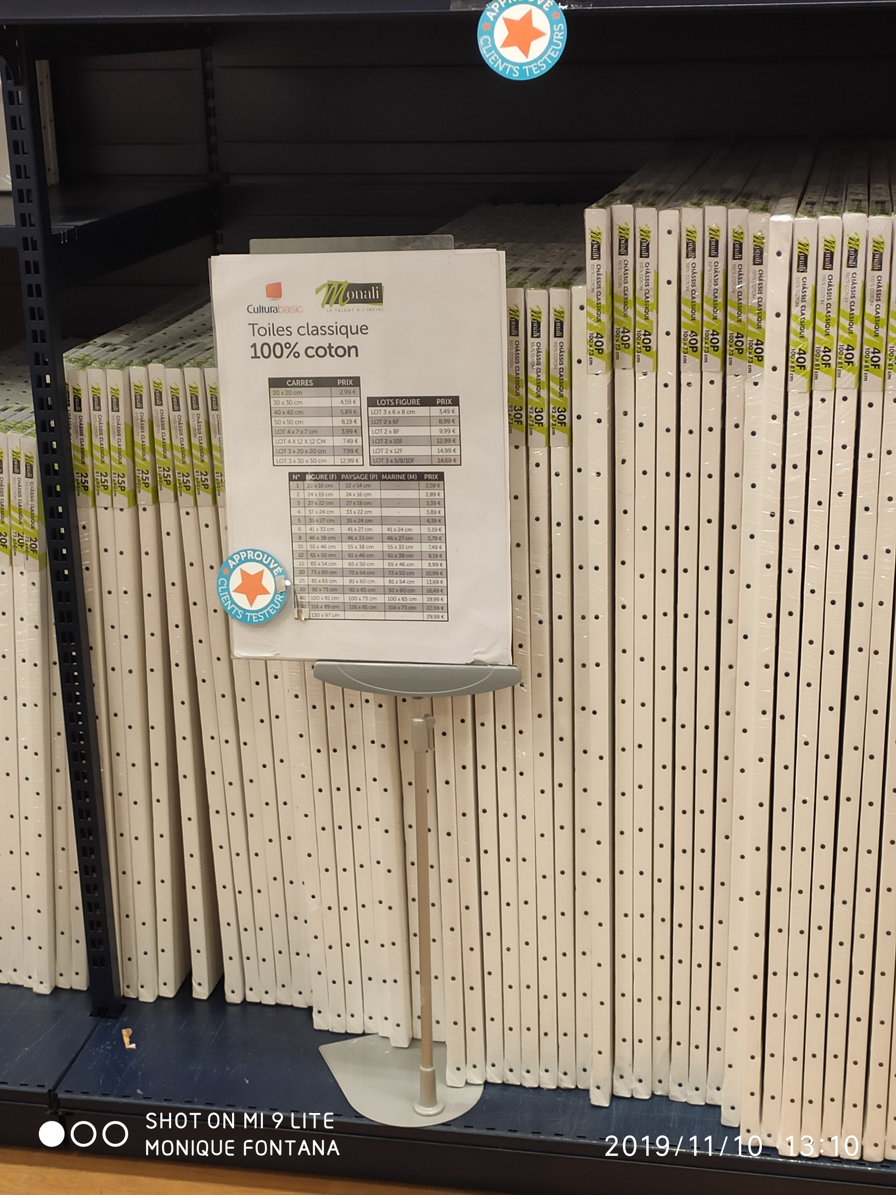Prix affiché en magasin et sur internet pas pareil sur le prix d'origine. Même si ça passe en caisse au prix internet. Pour le principe. Heureusement que j'avais regardé avant car sinon j'aurais jamais acheté. Par contre les stocks sont faux. J'ai fait beaucoup de kilomètres pour des feuilles de couleur qui n'y étaient pas physiquement. Très déçue