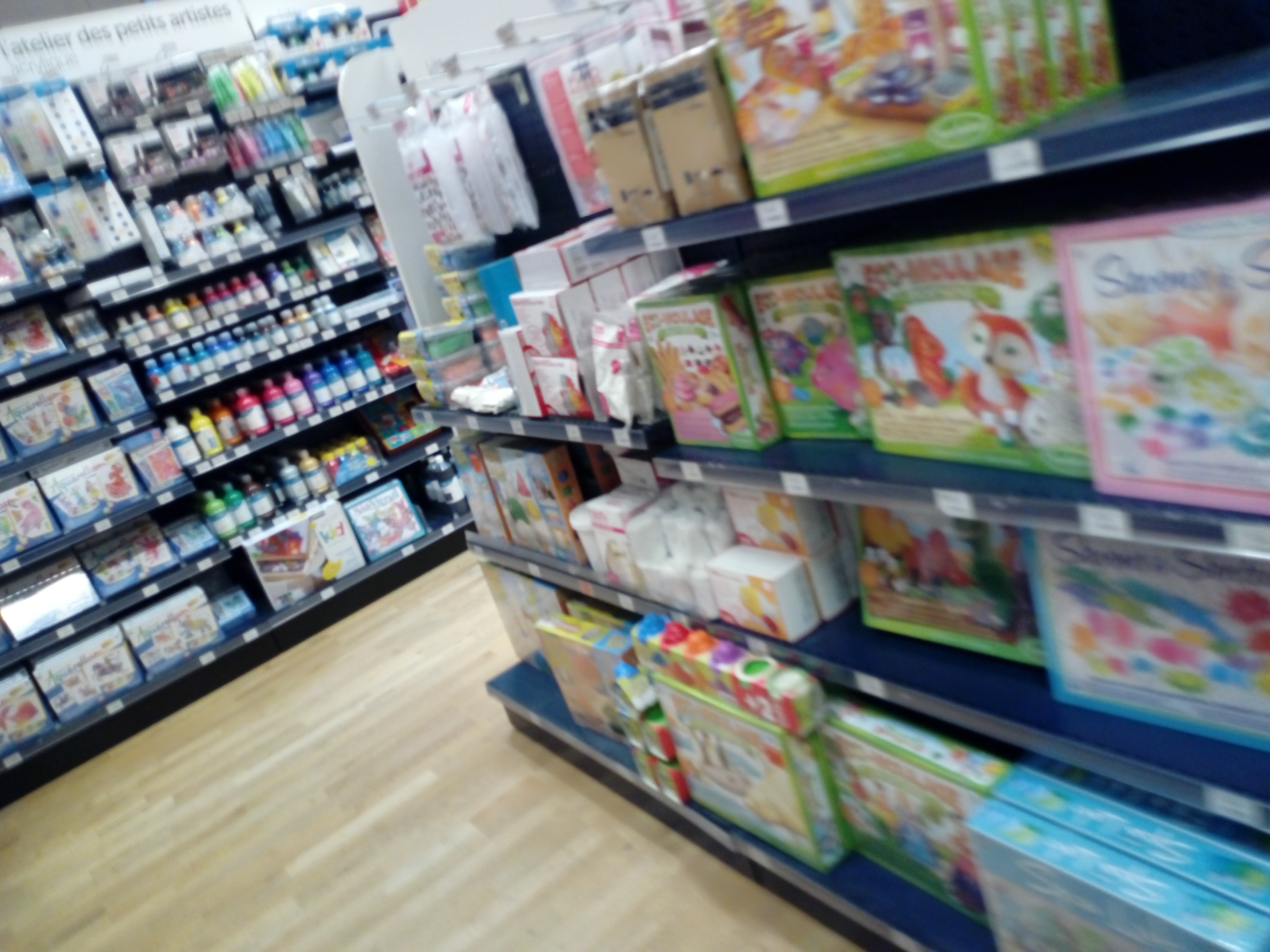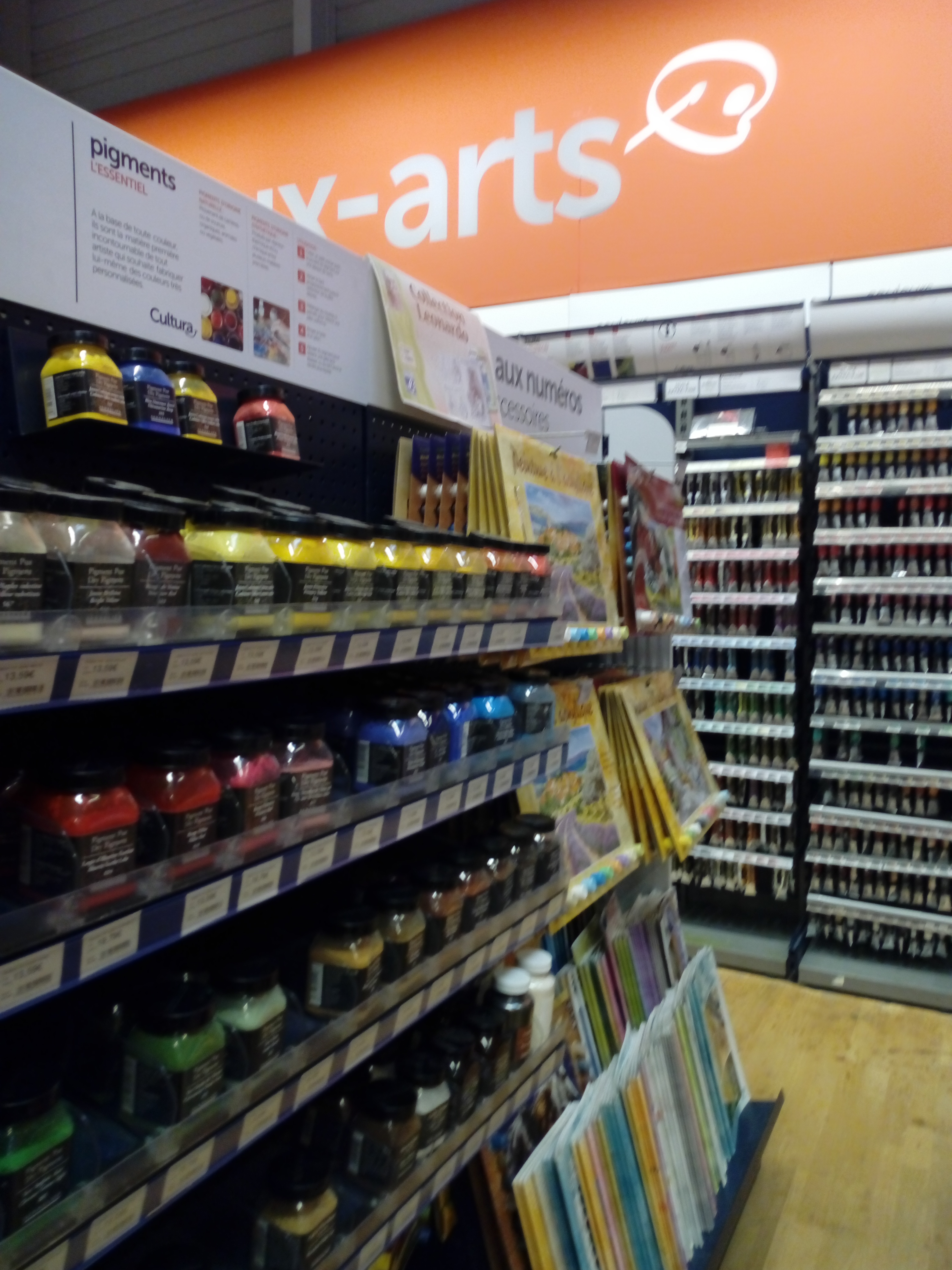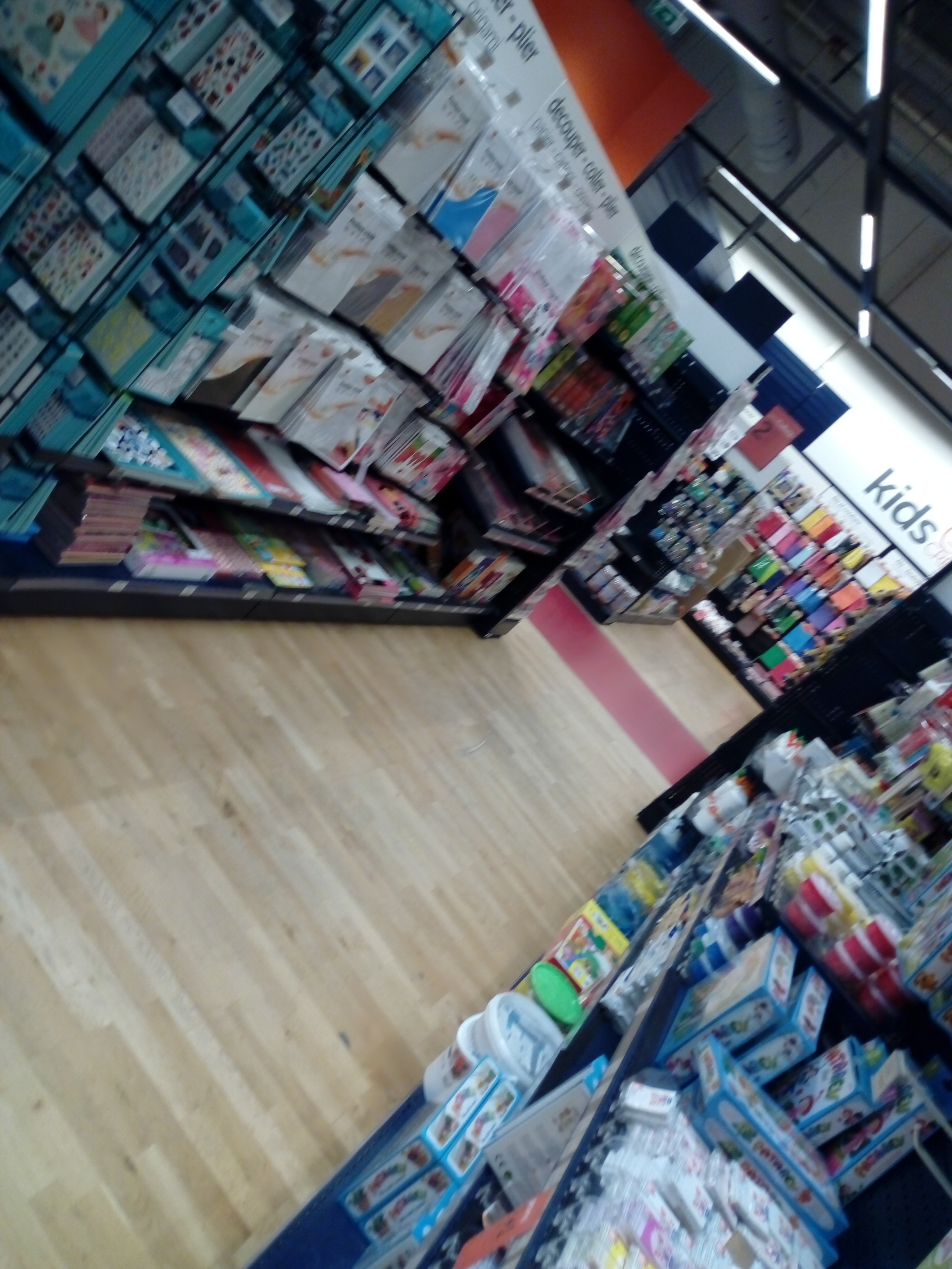 Le magasin de Balma est grand. Je ne suis allée que dans les rayons de fournitures de loisirs créatifs qui sont au fond a gauche : peinture, bougie, broderie, couture, gravure sur bois. Ateliers pour les enfants et quelques uns pour adulte. Mon choix du jour était la mosaïque où il manquait plusieurs des couleurs qui m'intéressaient dans les émaux de Briare. Et plus de joint disponible non plus. Dommage car j'étais venue spécialement pour cela. J'éviterai d'y aller un samedi car l'accès au parking était embouteillé et a pris beaucoup de temps.