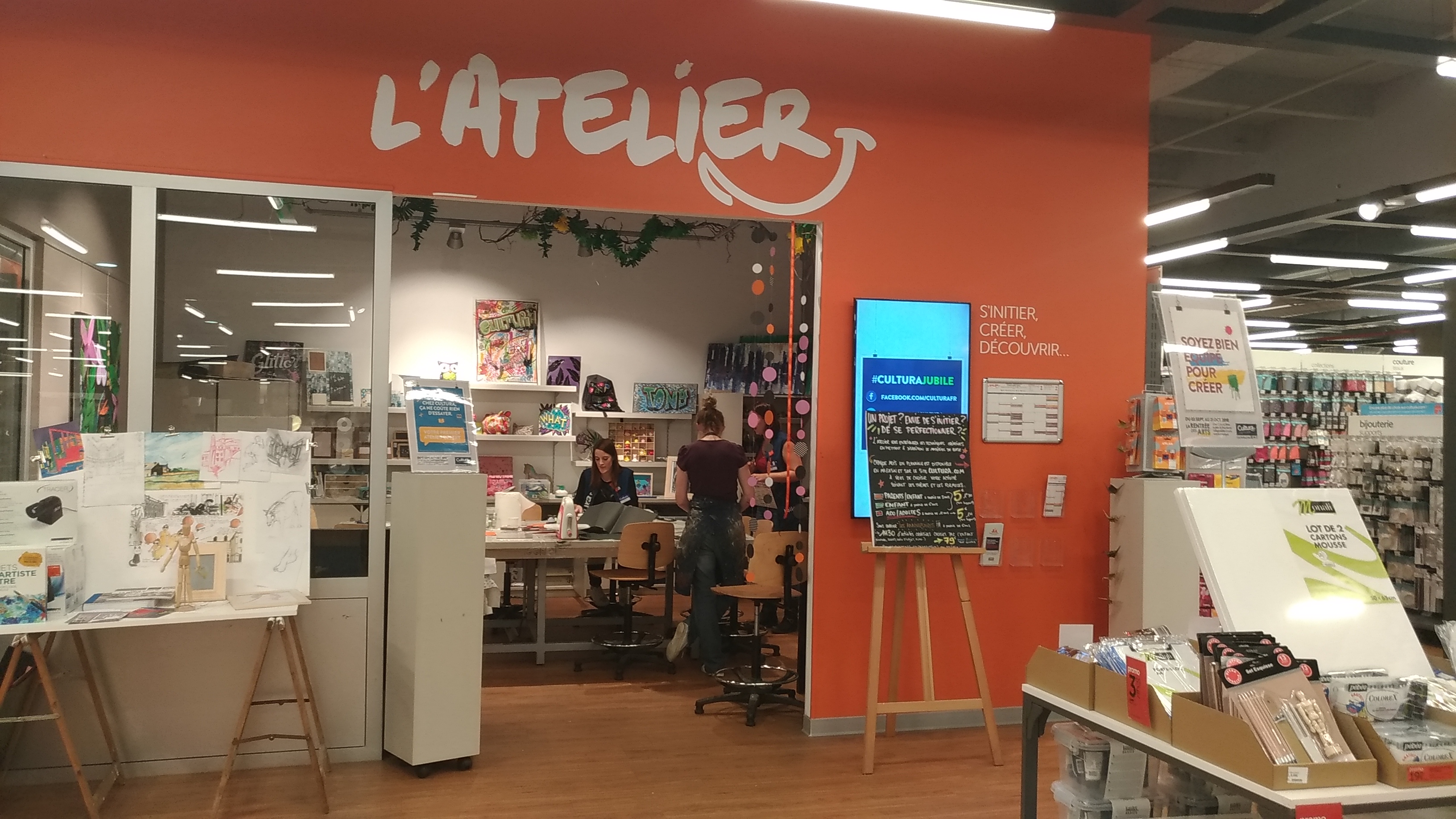 Grand choix de produit. Si vous cherchez quelque chose côté loisirs créatifs vous le trouverez forcément à cultura. Le petit plus la fermeture à 20h ce qui est très pratique lorsque l'on quitte à 19h comme moi.