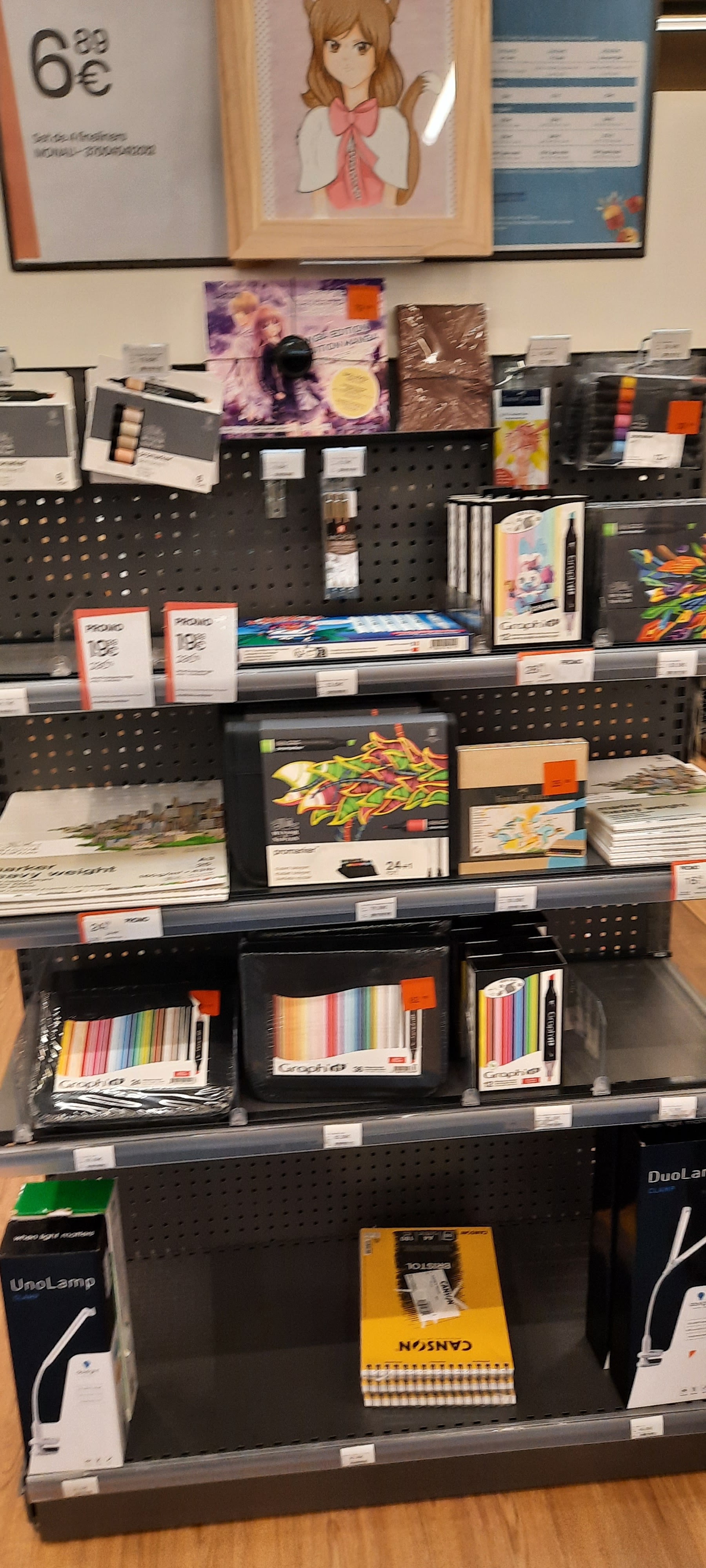 J'aime j'aime j'aime !!! Un vrai régal que ce soit librairie , fournitures pour les loisirs créatifs. Ou autres tout est là , c'est rangé , ordonné . Parfait je recommande.