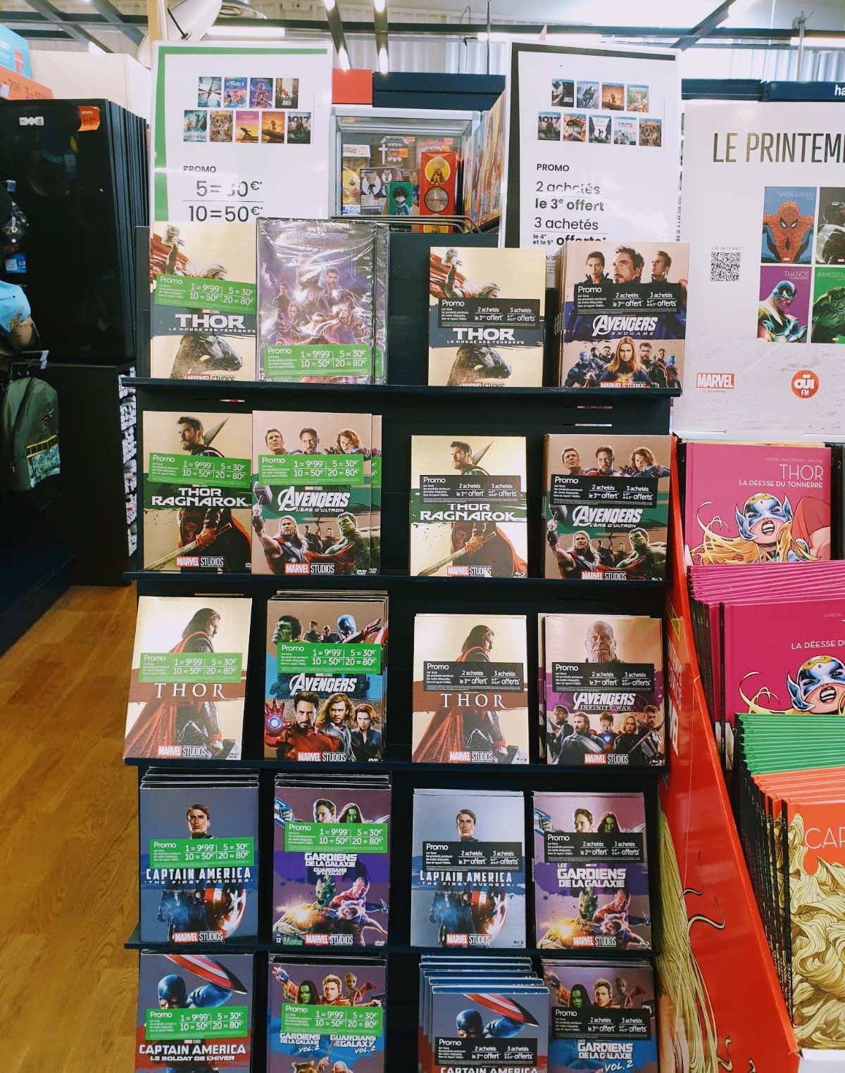 Le rayon dvd / blurays s'est bien vidé depuis les changements d'agencement dans le magasin. Je me procure désormais donc mes dvd dans d'autres enseignes où se trouvent toutes les nouveautés en temps et en heure et où les offres promotionnelles sont régulièrement mises à jour. Désolé !