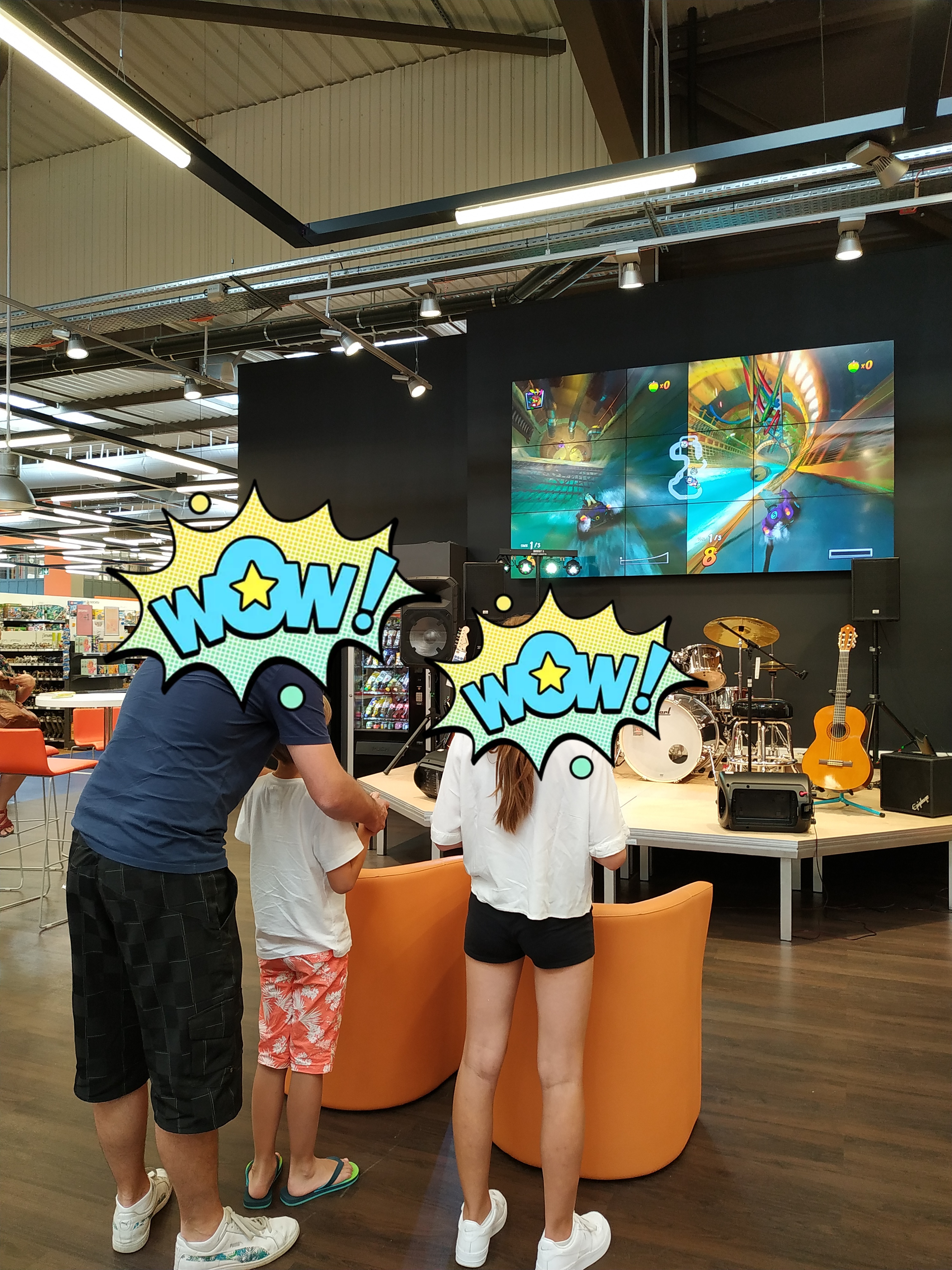 Toujours un bon moment à Cultura! On a profité d'une petite promo pour la rentrée et les enfants se sont amusés! (Et pas que les enfants !) Essai de batterie électronique, de jeu sur grand écran!