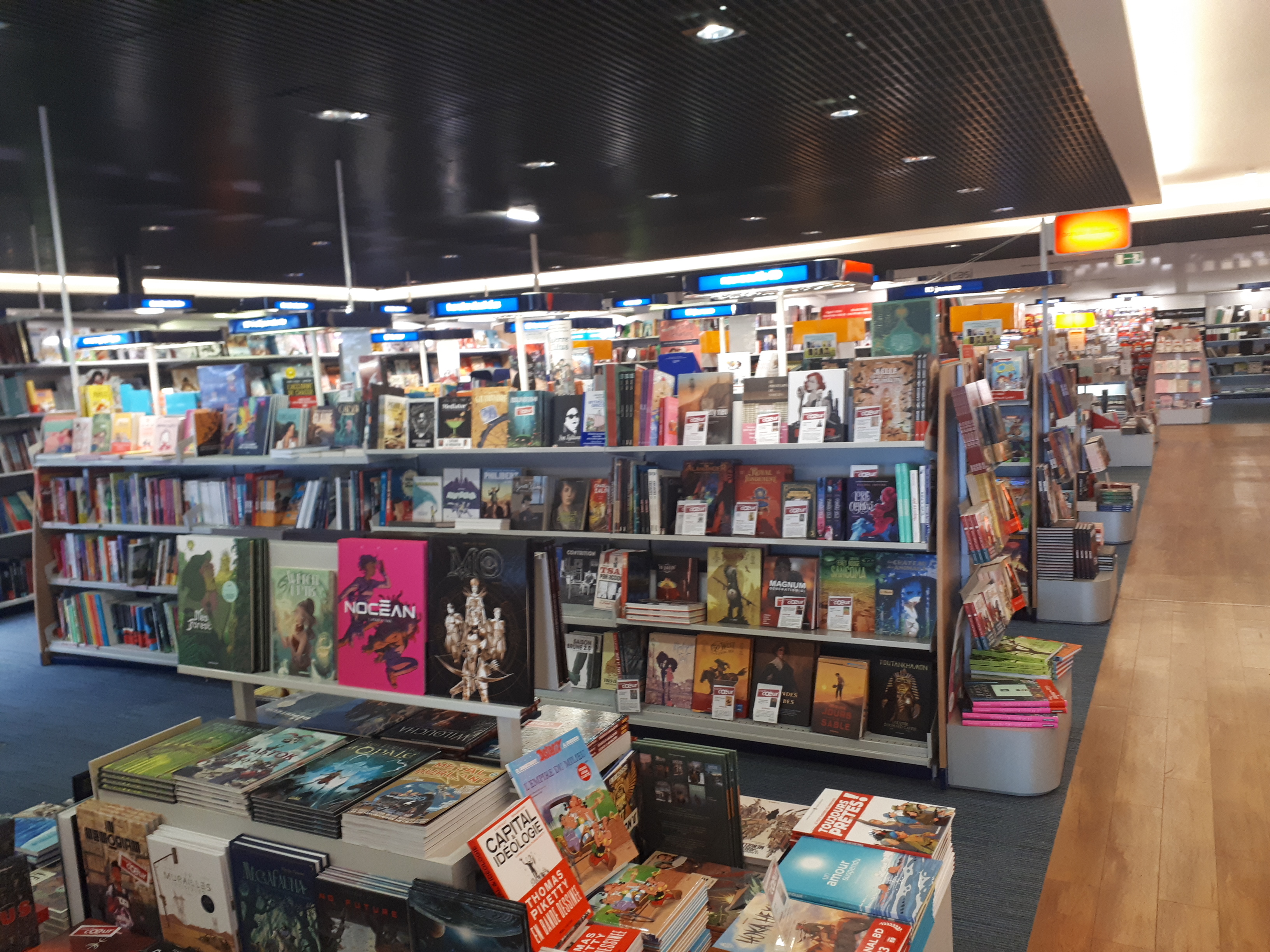 Le magasin est spacieux, les rayons fournis de romans, littérature jeunesse mais aussi de CD et jeux vidéos. On peut regretter l'attente aux caisses et l'absence de lieu pour se poser afin de faire découvrir les livres jeunesse à nos chères têtes blondes.