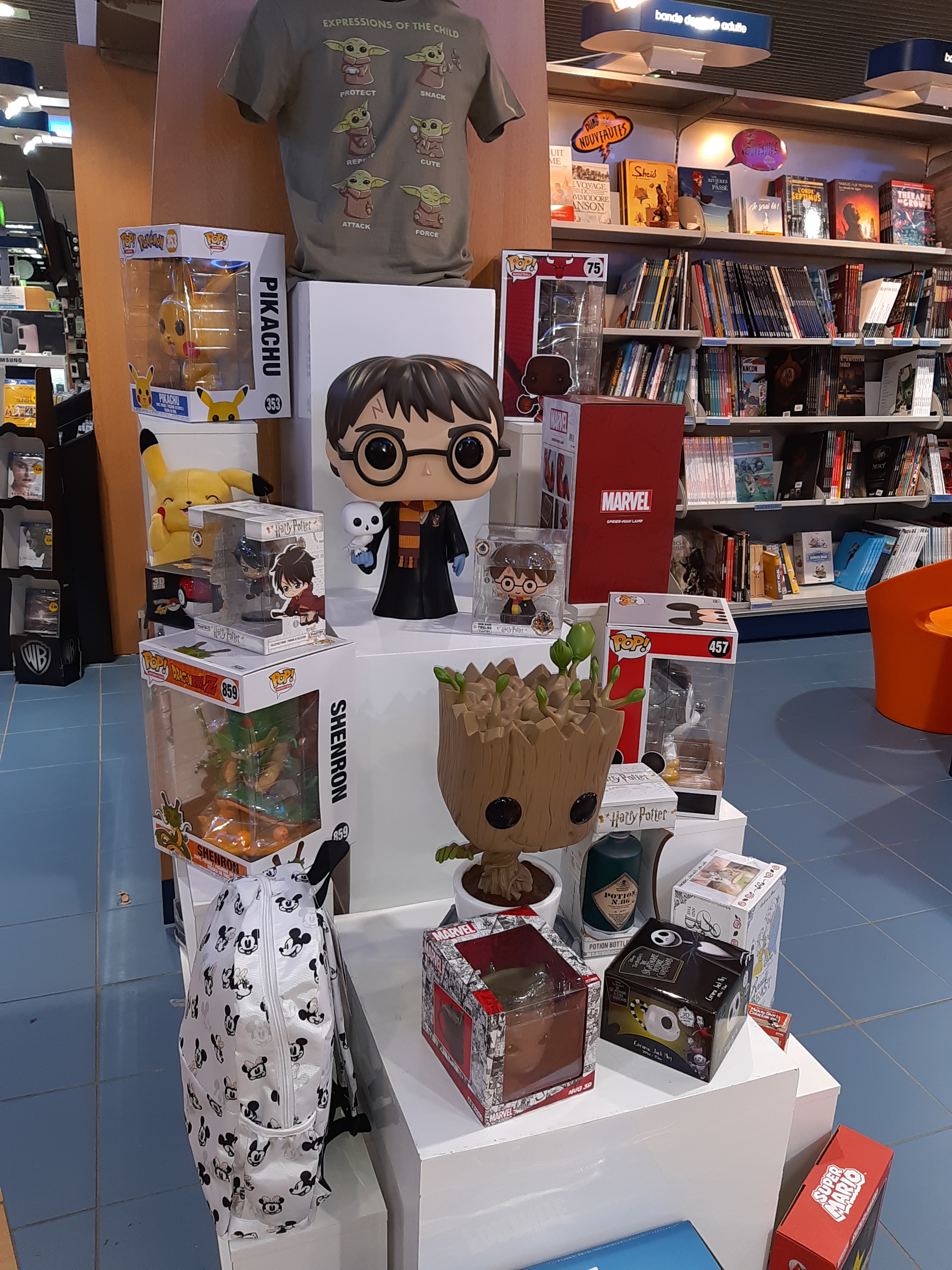 Tres grand choix de figurines pop et objets dérivés,magasin plutot petit mais tres bien achalandé en livres,cartes,mangas...A voir!