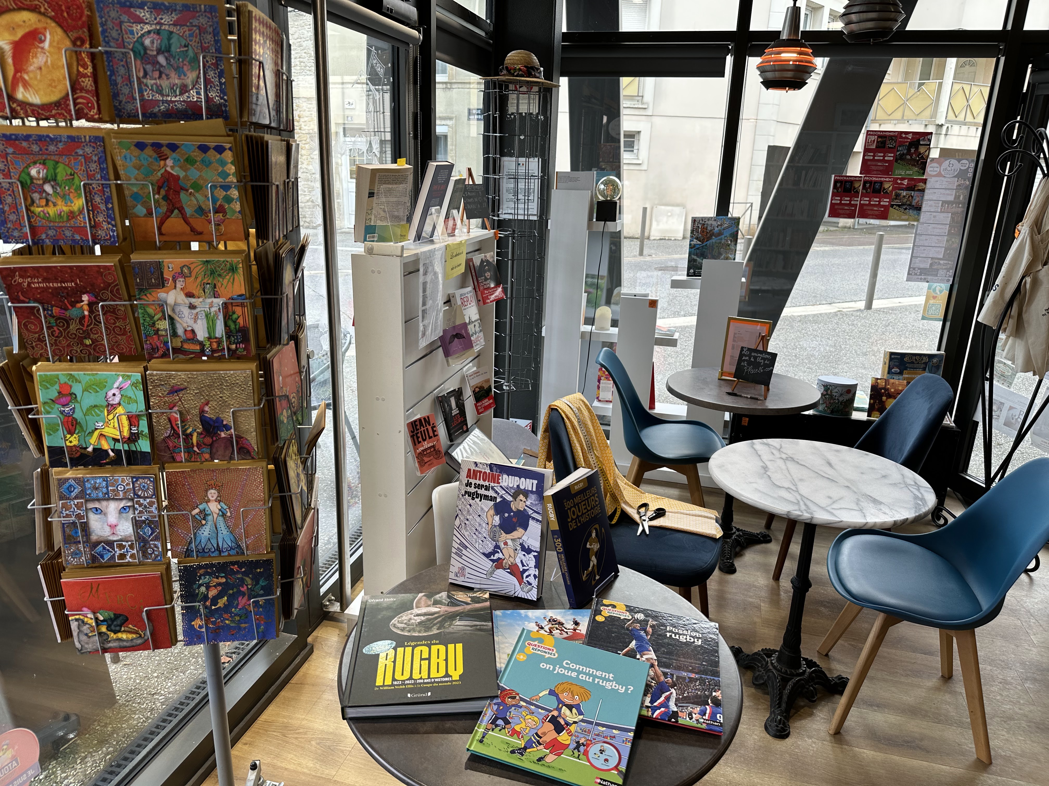 Une librairie avec possibilité de prendre un verre en terrasse dans un village normand proche des plages. Bonheur!